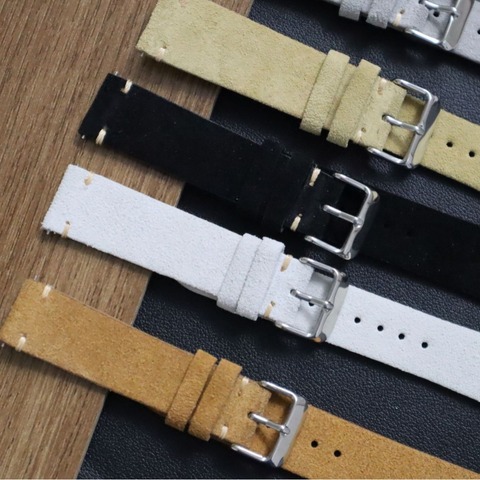 Hızlı yayın Vintage süet deri kayışlar 18mm boyut yedek Smartwatch bantları beyaz ve sarı nefes özelliği